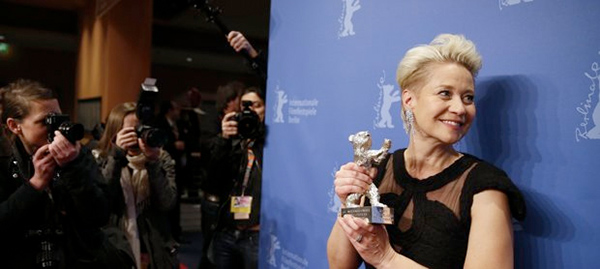 Se øjeblikket hvor Dyrholm modtager en sølvbjørn for bedste kvindelige hovedrolle, af en bukkende Streep.